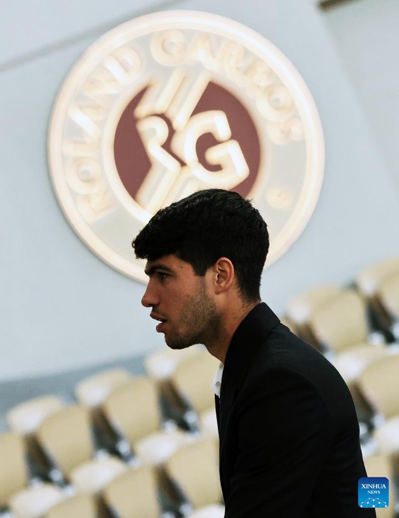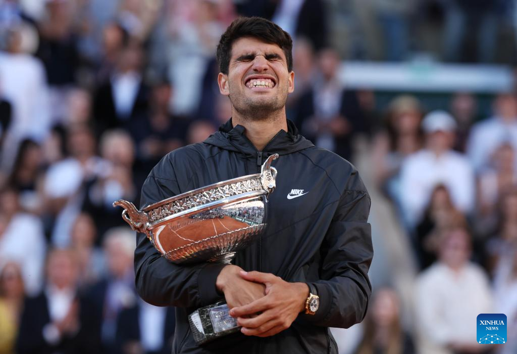 PARIS, 10 junio, 2024 (Xinhua) -- El español Carlos Alcaraz es visto un día después de ganar la final de individuales masculinos del torneo de tenis Abierto de Francia, en París, Francia, el 10 de junio de 2024. (Xinhua/Gao Jing)
