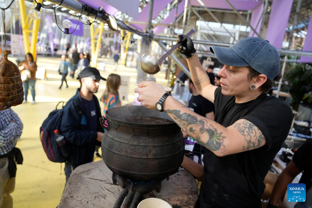 MONTEVIDEO, 9 junio, 2024 (Xinhua) -- Un cocinero prepara alimentos durante el festival gastronómico "Ollas del mundo", en el Espacio Modelo, en Montevideo, capital de Uruguay, el 9 de junio de 2024. (Xinhua/Nicolás Celaya)