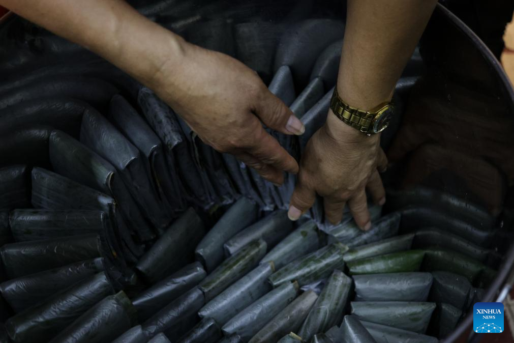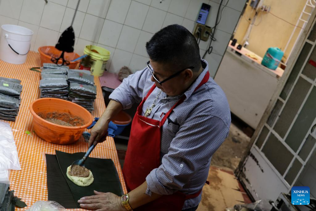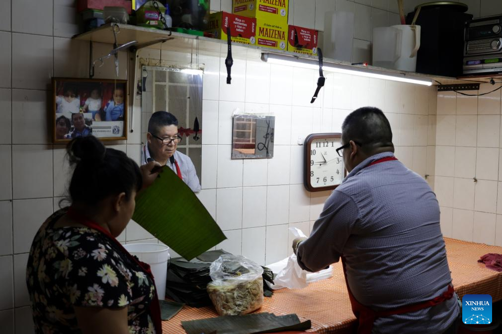 CIUDAD DE MEXICO, 9 junio, 2024 (Xinhua) -- Imagen del 8 de junio de 2024 de un empleado preparando tamales en el restaurante Tamales Madre, en la Ciudad de México, capital de México. Los tamales son un platillo popular en México. Como muchos otros alimentos en México, los tamales tienen sus orígenes hace cientos de años, mucho antes de la llegada de los españoles. Las comunidades indígenas de México disfrutaban de este alimento básico en sus dietas, hecho con harina de maíz rellena de carnes y salsas, envuelta y cocida al vapor en hojas de maíz u hojas de plátano. (Xinhua/Li Muzi)