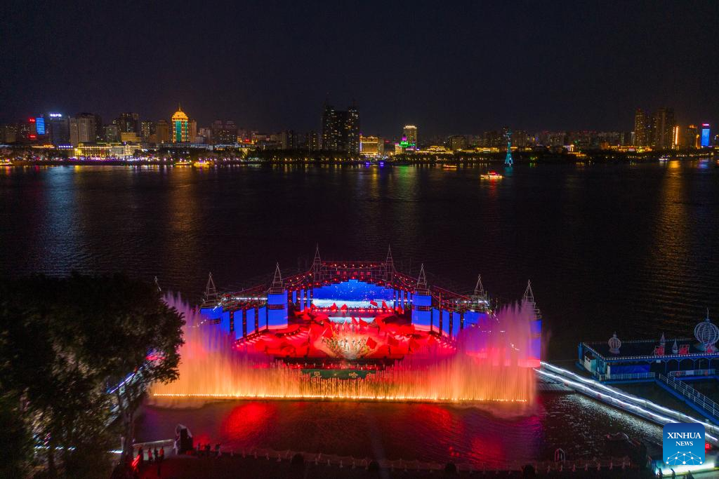 HARBIN, 12 junio, 2024 (Xinhua) -- Imagen del 10 de junio de 2024 de la presentación en vivo "Encuentro con Harbin" puesta en escena a lo largo del río Songhua, en Harbin, en la provincia de Heilongjiang, en el noreste de China. (Xinhua/Zhang Tao)