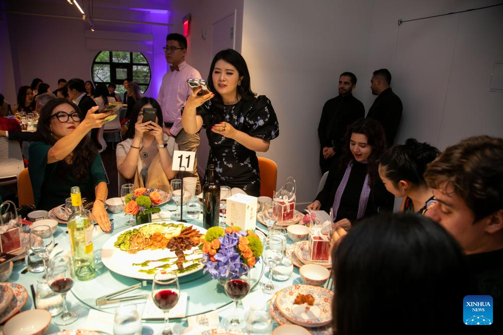 NUEVA YORK, 13 junio, 2024 (Xinhua) -- Imagen del 12 de junio de 2024 de invitados tomando fotografías durante la gran gala de inauguración del centro culinario lanzado por el Instituto de China, en Nueva York, Estados Unidos. El Instituto de China en América lanzó su centro culinario aquí el miércoles, creando una plataforma dedicada a mostrar y promover la auténtica cocina y cultura chinas. La gran gala de inauguración del centro se llevó a cabo en la sede del Instituto de China, una organización estadounidense sin fines de lucro fundada por distinguidos educadores chinos y estadounidenses para profundizar en el conocimiento de China en el mundo. (Xinhua/Michael Nagle)
