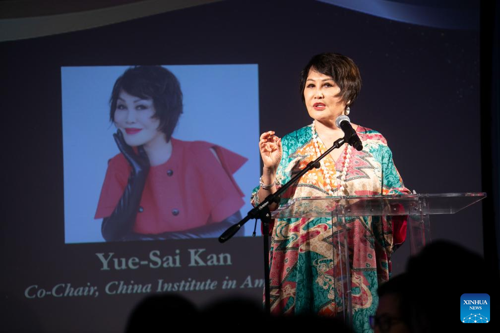 NUEVA YORK, 13 junio, 2024 (Xinhua) -- Imagen del 12 de junio de 2024 de Yue-Sai Kan, copresidenta de la junta directiva del Instituto de China, hablando durante la gran gala de inauguración del centro culinario lanzado por el Instituto de China, en Nueva York, Estados Unidos. El Instituto de China en América lanzó su centro culinario aquí el miércoles, creando una plataforma dedicada a mostrar y promover la auténtica cocina y cultura chinas. La gran gala de inauguración del centro se llevó a cabo en la sede del Instituto de China, una organización estadounidense sin fines de lucro fundada por distinguidos educadores chinos y estadounidenses para profundizar en el conocimiento de China en el mundo. (Xinhua/Michael Nagle)