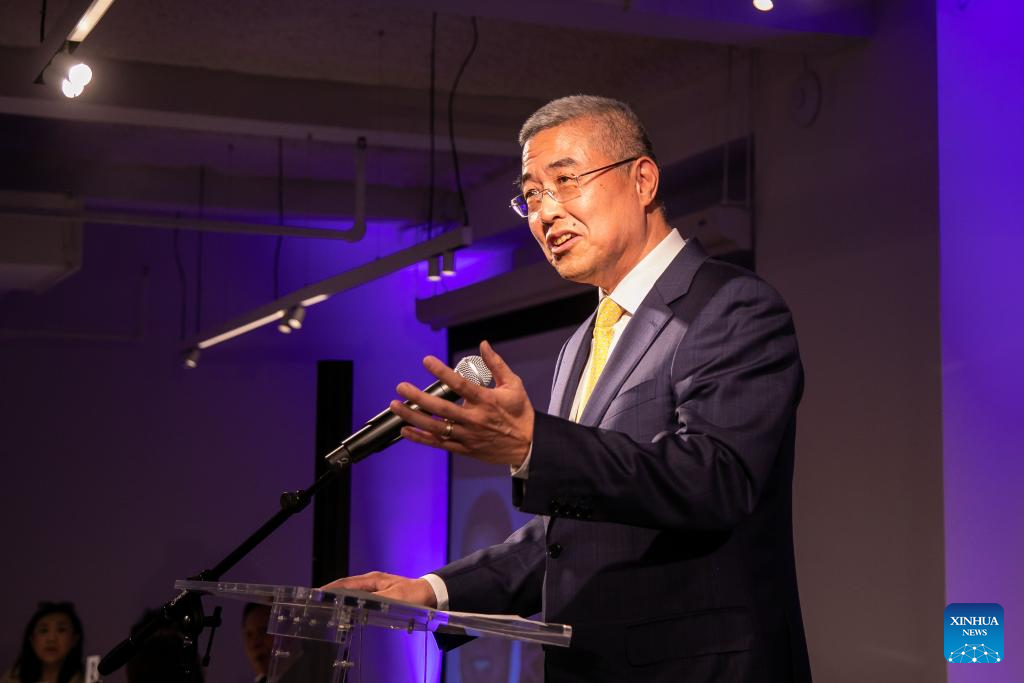 NUEVA YORK, 13 junio, 2024 (Xinhua) -- Imagen del 12 de junio de 2024 de George S. Geh, director ejecutivo del Instituto de China, hablando durante la gran gala de inauguración del centro culinario lanzado por el Instituto de China, en Nueva York, Estados Unidos. El Instituto de China en América lanzó su centro culinario aquí el miércoles, creando una plataforma dedicada a mostrar y promover la auténtica cocina y cultura chinas. La gran gala de inauguración del centro se llevó a cabo en la sede del Instituto de China, una organización estadounidense sin fines de lucro fundada por distinguidos educadores chinos y estadounidenses para profundizar en el conocimiento de China en el mundo. (Xinhua/Michael Nagle)