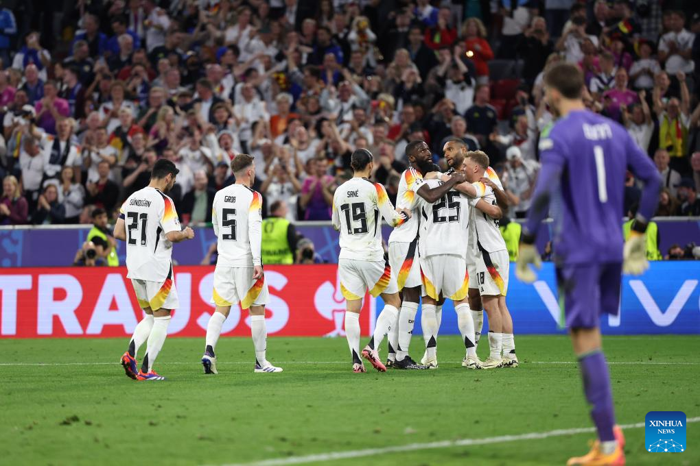 MUNICH, 15 junio, 2024 (Xinhua) -- Imagen del 14 de junio de 2024 de jugadores de Alemania festejando una anotación durante el partido correspondiente al Grupo A de la Euro 2024 de la UEFA entre Alemania y Escocia, en Múnich, Alemania. (Xinhua/Bai Xuefei)
