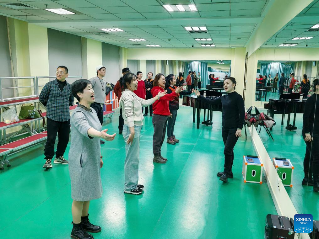 YINCHUAN, 13 junio, 2024 (Xinhua) -- Imagen tomada con un teléfono móvil en 2023 de Sa Lina enseñando Hua'er, un tipo de canción folclórica popular en el noroeste de China, en Yinchuan, en la región autónoma hui de Ningxia, en el noroeste de China. Sa Lina, de 38 años, ha tenido que hacer malabarismos con una agenda agitada últimamente, interpretando Hua'er, un tipo de canción popular folclórica en el noroeste de China, no sólo en su ciudad natal, la región autónoma hui de Ningxia, sino también en las provincias vecinas de Gansu y Qinghai. (Xinhua)