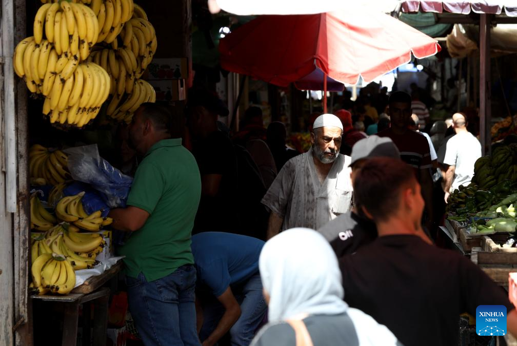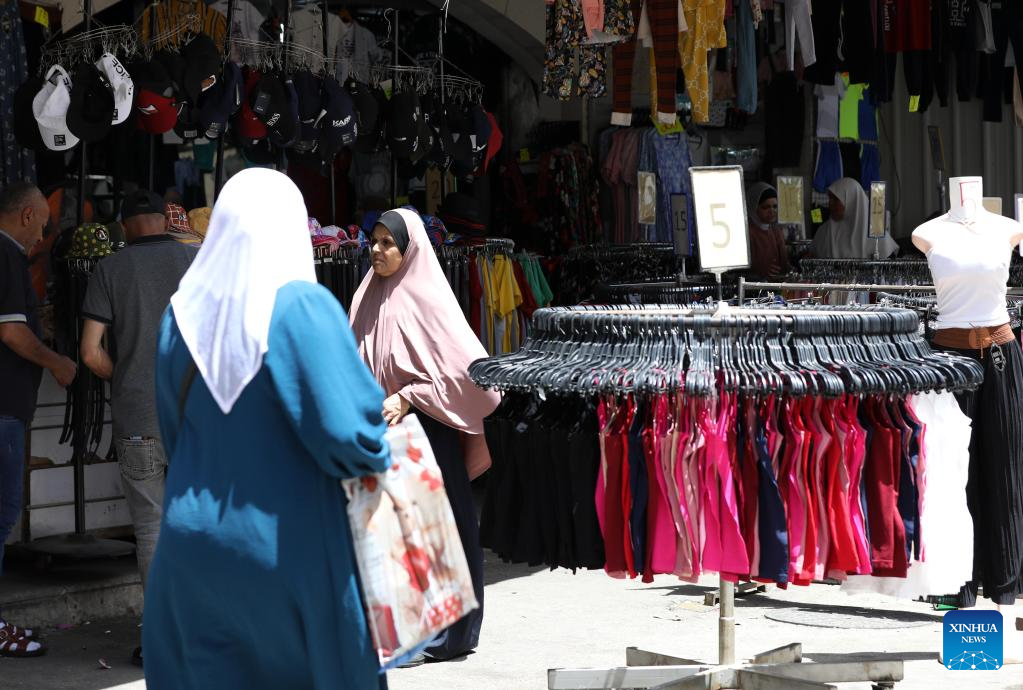 RAMALLAH, 16 junio, 2024 (Xinhua) -- Imagen del 15 de junio de 2024 de personas visitando un mercado previo al Eid al-Adha, en la ciudad cisjordana de Ramallah. (Xinhua/Ayman Nobani)