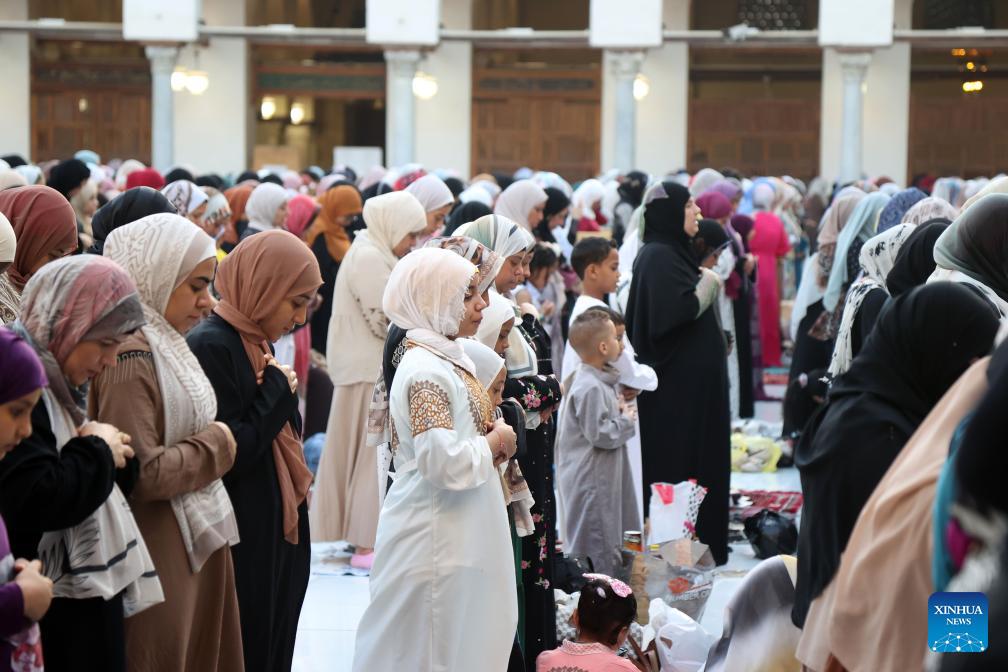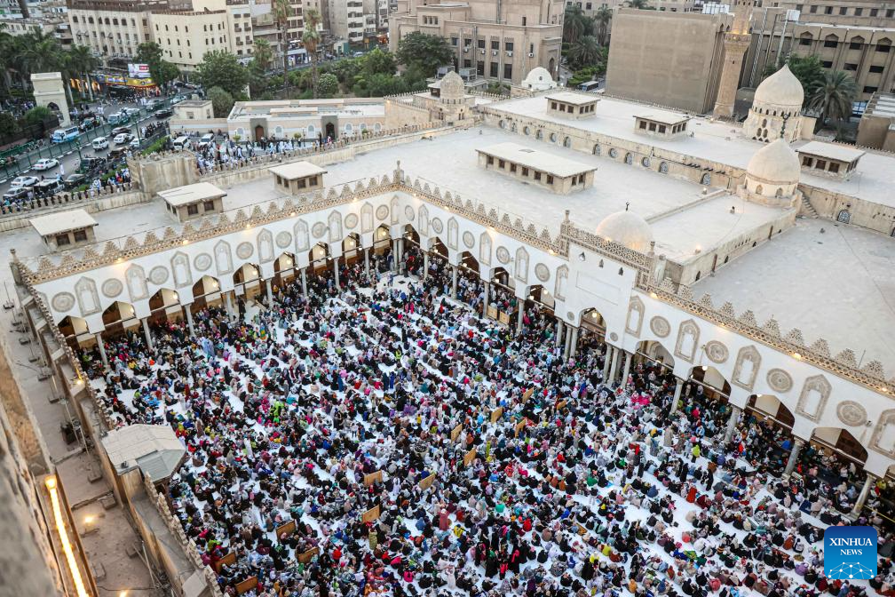 EL CAIRO, 16 junio, 2024 (Xinhua) -- Personas se reúnen para una oración de Eid al-Adha en la mezquita de Al-Azhar, en El Cairo, Egipto, el 16 de junio de 2024. (Xinhua/Ahmed Gomaa)