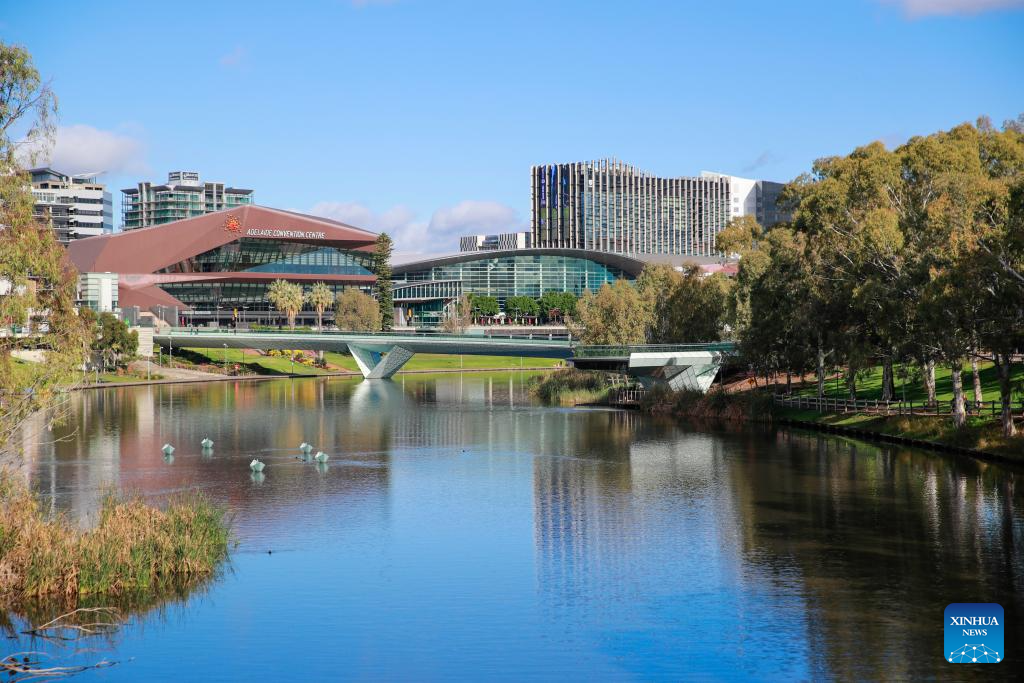 ADELAIDA, 16 junio, 2024 (Xinhua) -- Imagen del 15 de junio de 2024 de una vista exterior del Centro de Convenciones de Adelaida, en Adelaida, Australia. (Xinhua/Ma Ping)
