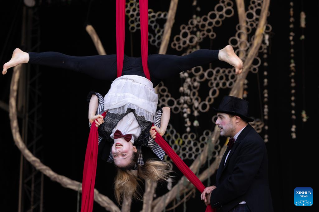 LIUBLIANA, 17 junio, 2024 (Xinhua) -- Un acróbata realiza una presentación durante el Festival Internacional de Clown Contemporáneo y Nuevo Circo, en Liubliana, Eslovenia, el 17 de junio de 2024. El Festival Internacional de Clown Contemporáneo y Nuevo Circo se lleva a cabo aquí del 17 al 23 de junio. (Xinhua/Zeljko Stevanic)