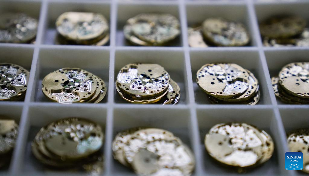 DANDONG, 18 junio, 2024 (Xinhua) -- Imagen del 18 de junio de 2024 de componentes de relojes en Liaoning Peacock Watch Co., Ltd., en la ciudad de Dandong, en la provincia de Liaoning, en el noreste de China. La industria relojera es una de las industrias tradicionales de la ciudad de Dandong. En los últimos años, Dandong ha promovido vigorosamente la innovación tecnológica y cultivado empresas innovadoras, con el fin de mejorar las industrias tradicionales y desarrollar la fabricación de alta tecnología. (Xinhua/Fan Yuqing)