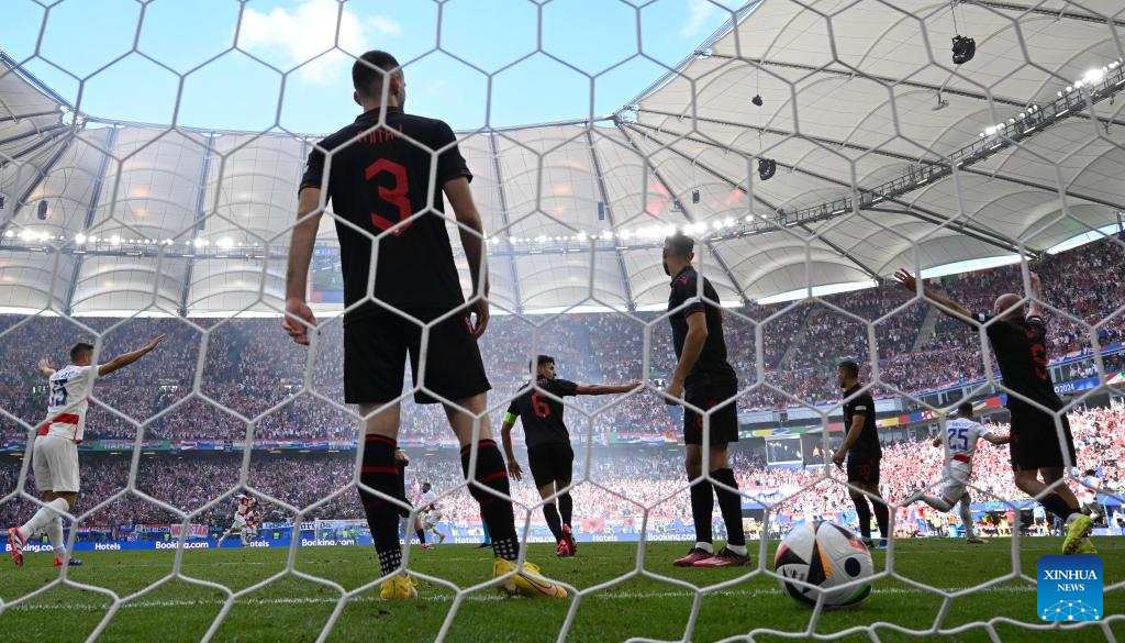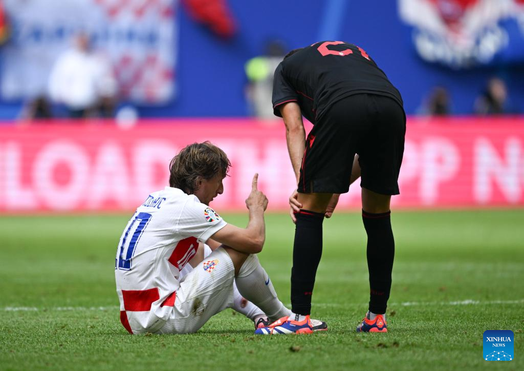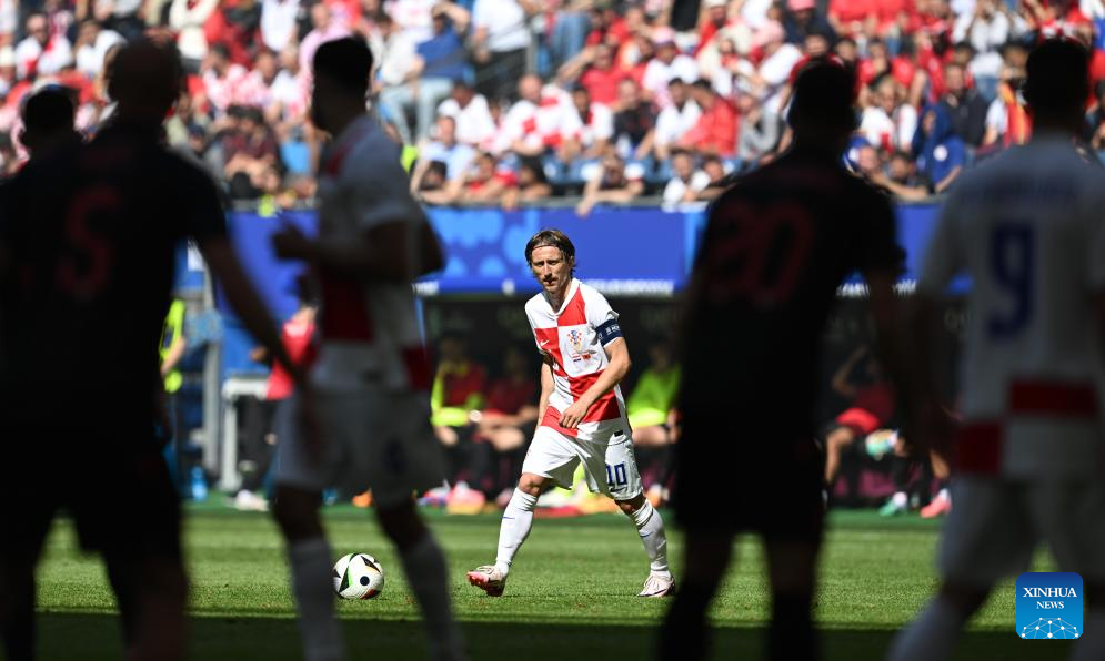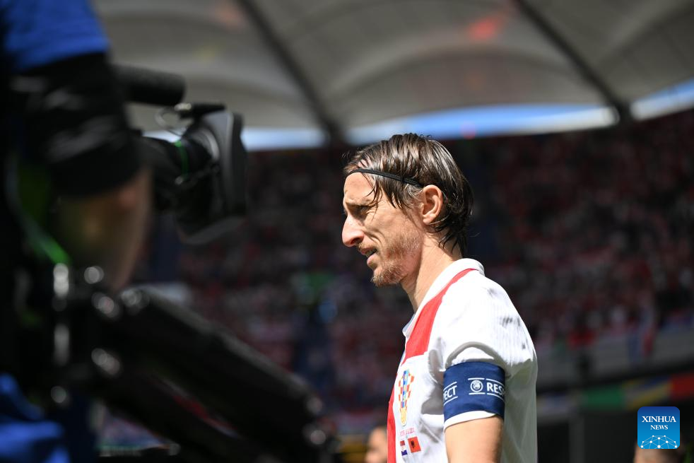 HAMBURGO, 19 junio, 2024 (Xinhua) -- Luka Modric (c), de Croacia, reacciona durante el partido correspondiente al Grupo B de la EURO 2024 de la UEFA entre Croacia y Albania, en Hamburgo, Alemania, el 19 de junio de 2024. (Xinhua/Xiao Yijiu)