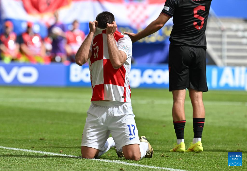 HAMBURGO, 19 junio, 2024 (Xinhua) -- Bruno Petkovic, de Croacia, reacciona durante el partido correspondiente al Grupo B de la EURO 2024 de la UEFA entre Croacia y Albania, en Hamburgo, Alemania, el 19 de junio de 2024. (Xinhua/Ren Pengfei)