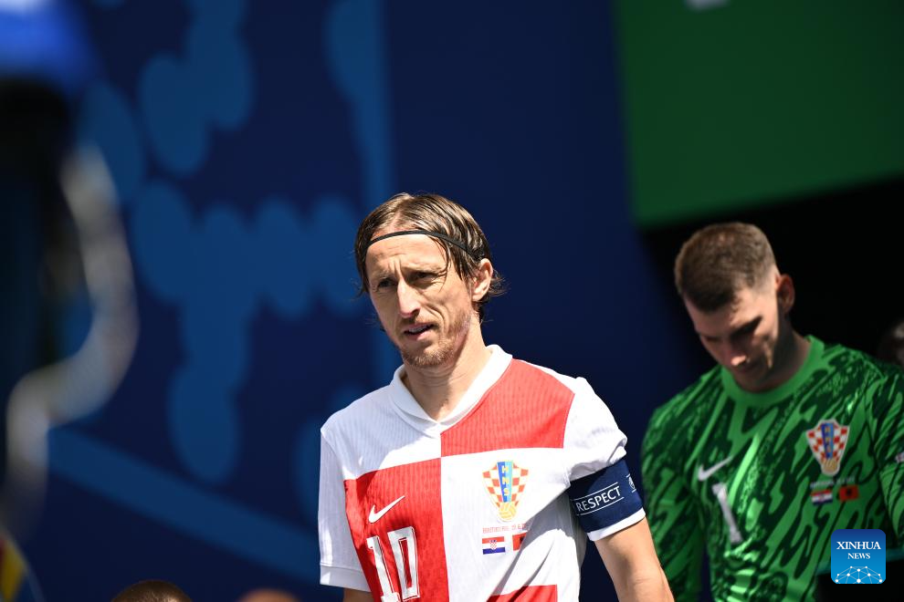 HAMBURGO, 19 junio, 2024 (Xinhua) -- Luka Modric (i), de Croacia, llega previo al partido correspondiente al Grupo B de la EURO 2024 de la UEFA entre Croacia y Albania, en Hamburgo, Alemania, el 19 de junio de 2024. (Xinhua/Xiao Yijiu)