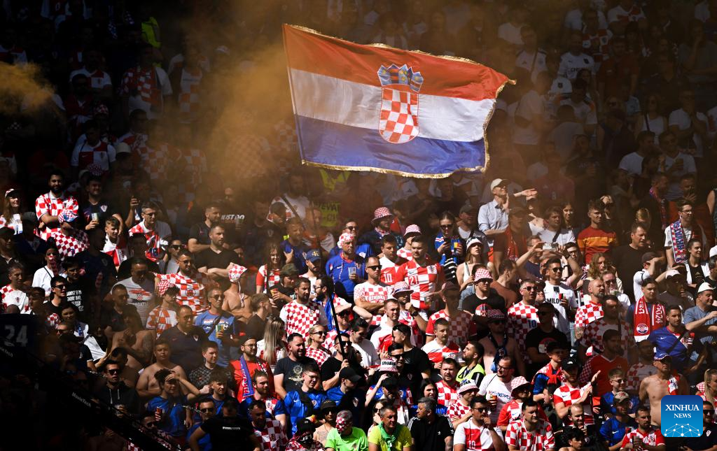 HAMBURGO, 19 junio, 2024 (Xinhua) -- Aficionados de Croacia son vistos durante el partido correspondiente al Grupo B de la EURO 2024 de la UEFA entre Croacia y Albania, en Hamburgo, Alemania, el 19 de junio de 2024. (Xinhua/Xiao Yijiu)