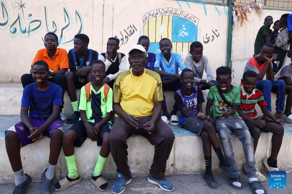 EL CAIRO, 20 junio, 2024 (Xinhua) -- Imagen del 18 de junio de 2024 de Kamal Mahmoud (c), un sudanés que trabaja como entrenador de fútbol, sentándose con niños refugiados durante un partido de fútbol en una academia de deportes, en El Cairo, Egipto. El Día Mundial de los Refugiados es conmemorado por las Naciones Unidas el 20 de junio de cada año "para honrar a los refugiados de todo el mundo". El Alto Comisionado de las Naciones Unidas para los Refugiados (ACNUR) afirmó en un informe reciente que Egipto acoge actualmente a más de 600.000 refugiados y solicitantes de asilo registrados de 62 nacionalidades, no obstante, algunos expertos egipcios creen que, aunque los refugiados son bien recibidos en Egipto, su presencia debe ser regulada, y que Egipto debería recibir financiación de la ONU para cubrir los costes de acogida y prestación de servicios para ellos, ya que el país ya sufre presiones económicas. (Xinhua/Ahmed Gomaa)