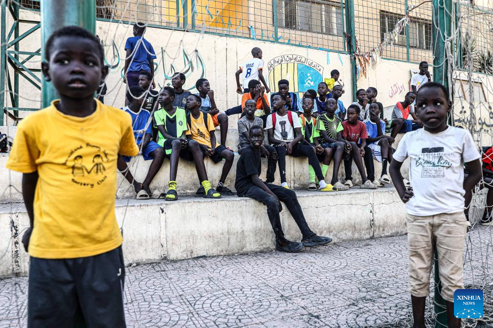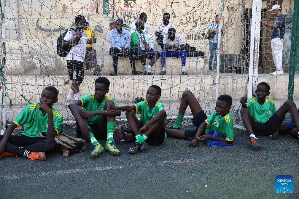 EL CAIRO, 20 junio, 2024 (Xinhua) -- Imagen del 18 de junio de 2024 de niños refugiados vistos durante un partido de fútbol en una academia de deportes, en El Cairo, Egipto. El Día Mundial de los Refugiados es conmemorado por las Naciones Unidas el 20 de junio de cada año "para honrar a los refugiados de todo el mundo". El Alto Comisionado de las Naciones Unidas para los Refugiados (ACNUR) afirmó en un informe reciente que Egipto acoge actualmente a más de 600.000 refugiados y solicitantes de asilo registrados de 62 nacionalidades, no obstante, algunos expertos egipcios creen que, aunque los refugiados son bien recibidos en Egipto, su presencia debe ser regulada, y que Egipto debería recibir financiación de la ONU para cubrir los costes de acogida y prestación de servicios para ellos, ya que el país ya sufre presiones económicas. (Xinhua/Ahmed Gomaa)