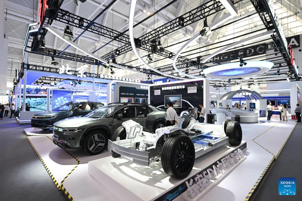 TIANJIN, 20 junio, 2024 (Xinhua) -- Automóviles son exhibidos en la Exposición Mundial de Inteligencia 2024, en Tianjin, en el norte de China, el 20 de junio de 2024. La Exposición Mundial de Inteligencia 2024 fue inaugurada el jueves en Tianjin. Bajo el tema "Inteligencia: Amplio espacio de desarrollo y motor de crecimiento sostenible", la exposición está organizada conjuntamente por los gobiernos municipales de Tianjin y Chongqing. (Xinhua/Sun Fanyue)