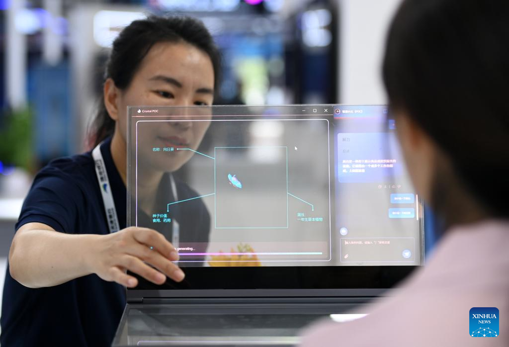 TIANJIN, 20 junio, 2024 (Xinhua) -- Personas visitan el estand de China Unicom en la Exposición Mundial de Inteligencia 2024, en Tianjin, en el norte de China, el 20 de junio de 2024. La Exposición Mundial de Inteligencia 2024 fue inaugurada el jueves en Tianjin. Bajo el tema "Inteligencia: Amplio espacio de desarrollo y motor de crecimiento sostenible", la exposición está organizada conjuntamente por los gobiernos municipales de Tianjin y Chongqing. (Xinhua/Zhao Zishuo)
