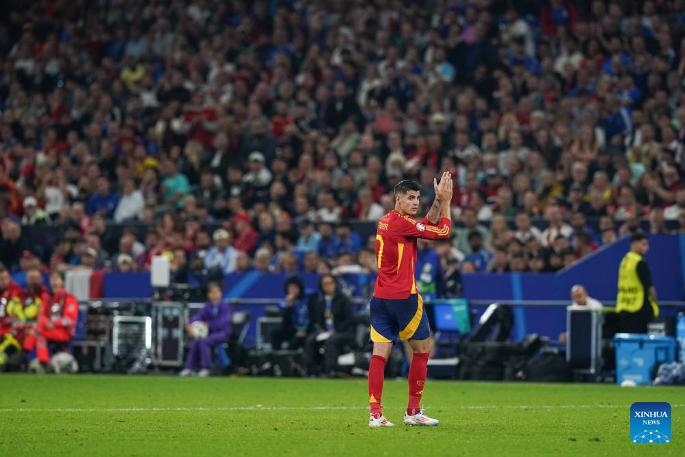 GELSENKIRCHEN, 21 junio, 2024 (Xinhua) -- Imagen del 20 de junio de 2024 de Alvaro Morata, de España, saludando a los espectadores al término del partido correspondiente al Grupo B de la EURO 2024 de la UEFA, entre España e Italia, en Gelsenkirchen, Alemania. (Xinhua/Peng Ziyang)