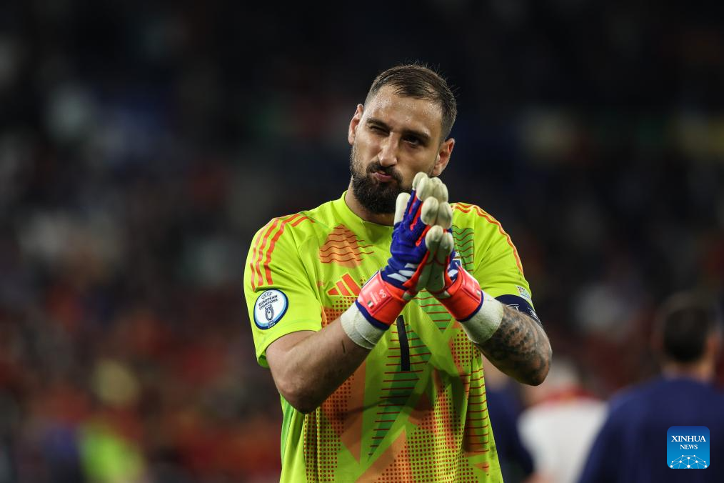 GELSENKIRCHEN, 21 junio, 2024 (Xinhua) -- Imagen del 20 de junio de 2024 del guardameta Gianluigi Donnarumma, de Italia, reaccionando al término del partido correspondiente al Grupo B de la EURO 2024 de la UEFA, entre España e Italia, en Gelsenkirchen, Alemania. (Xinhua/Pan Yulong)