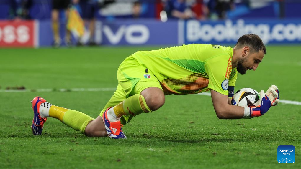 GELSENKIRCHEN, 21 junio, 2024 (Xinhua) -- Imagen del 20 de junio de 2024 del guardameta Gianluigi Donnarumma, de Italia, atajando el balón durante el partido correspondiente al Grupo B de la EURO 2024 de la UEFA, entre España e Italia, en Gelsenkirchen, Alemania. (Xinhua/Pan Yulong)