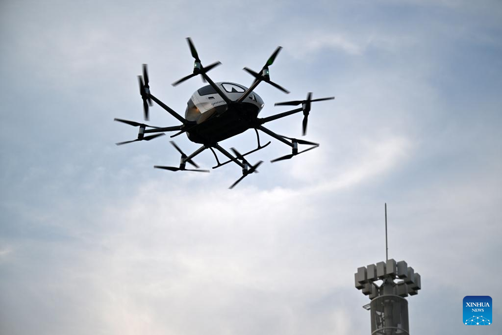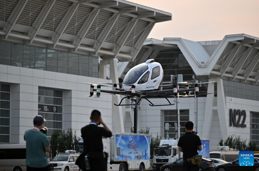 TIANJIN, 21 junio, 2024 (Xinhua) -- Imagen del 19 de junio de 2024 de una aeronave de baja altitud vista en el Centro Nacional de Convenciones y Exposiciones, en Tianjin, en el norte de China. La Exposición Mundial de Inteligencia 2024, bajo el tema "Inteligencia: Amplio Espacio de Desarrollo y Motor de Crecimiento Sostenible", se inauguró el jueves en Tianjin, en el norte de China, y la exposición sobre economía de baja altitud ha acaparado mucha atención. La creciente economía de baja altitud ha llevado al desarrollo y la aplicación de diversos tipos de vehículos aéreos innovadores para la logística, los desplazamientos, el turismo e incluso los deportes. Abarca una cadena de industrias, que incluyen la investigación y el desarrollo de aeronaves, la construcción y operación de infraestructura y los servicios para actividades de vuelo. (Xinhua/Li Ran)