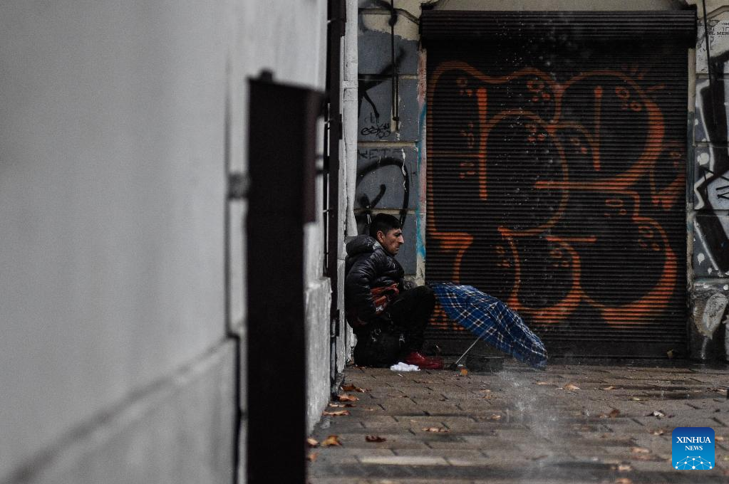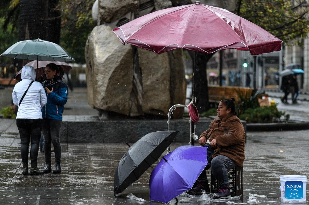 SANTIAGO, 21 junio, 2024 (Xinhua) -- Una persona se protege de la lluvia, en Santiago, capital de Chile, el 21 de junio de 2024. (Xinhua/Jorge Villegas)