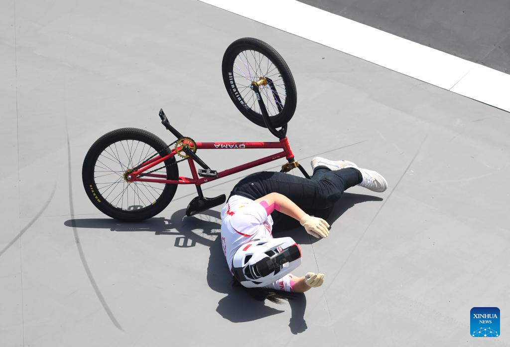 BUDAPEST, 21 junio, 2024 (Xinhua) -- Sun Sibei, de China, se cae durante la clasificatoria de park femenino de ciclismo BMX freestyle en las Series de Clasificación Olímpica de Budapest, en Budapest, Hungría, el 21 de junio de 2024. (Xinhua/He Canling)