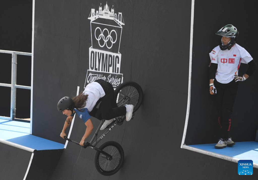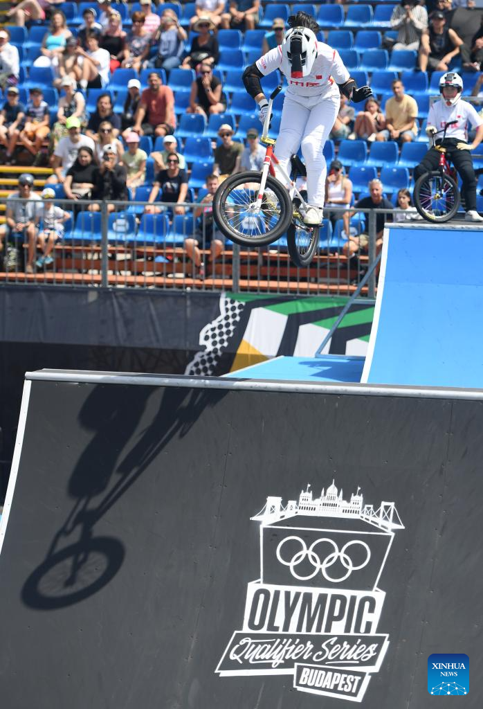 BUDAPEST, 21 junio, 2024 (Xinhua) -- Sun Jiaqi, de China, compite durante la clasificatoria de park femenino de ciclismo BMX freestyle en las Series de Clasificación Olímpica de Budapest, en Budapest, Hungría, el 21 de junio de 2024. (Xinhua/He Canling)