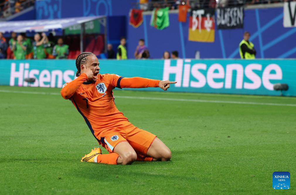 LEIPZIG, 22 junio, 2024 (Xinhua) -- Imagen del 21 de junio de 2024 de Xavi Simons, de Países Bajos, festejando una anotación que posteriormente fue anulada durante el partido correspondiente al Grupo D de la EURO 2024 de la UEFA, entre Francia y Países Bajos, en Leipzig, Alemania. (Xinhua/Bai Xuefei)