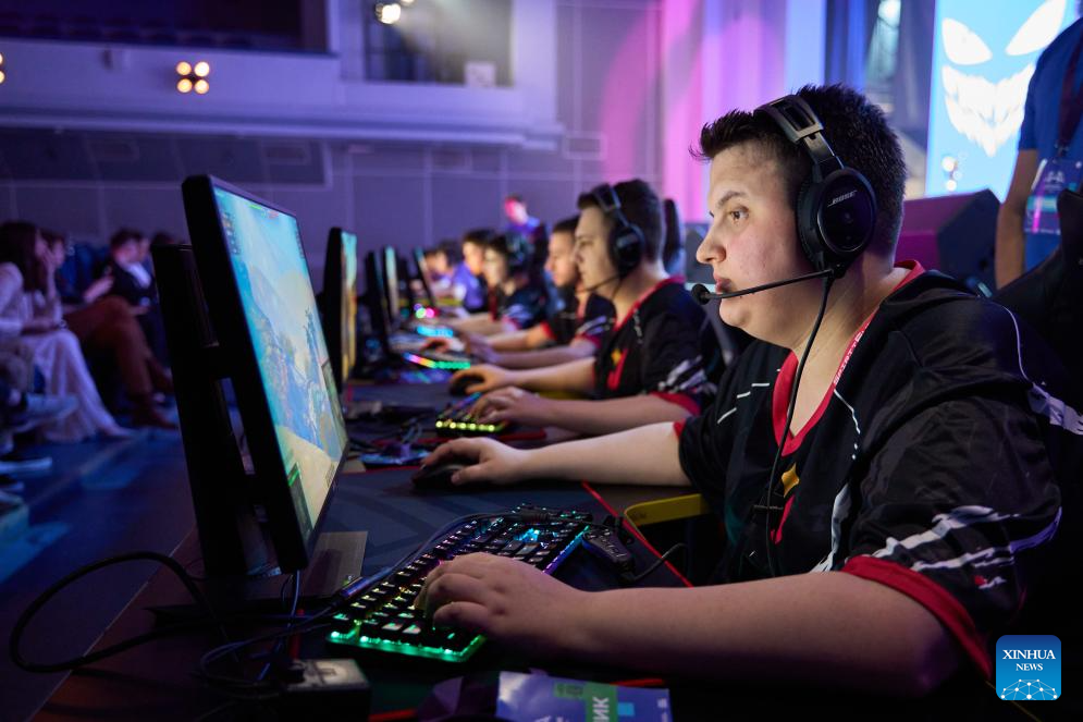 VLADIVOSTOK, 25 junio, 2024 (Xinhua) -- Participantes compiten en el Torneo Regional CyberVostok 2024 de la semana de los Deportes Electrónicos celebrada en Vladivostok, Rusia, el 25 de junio de 2024. (Xinhua/Guo Feizhou)
