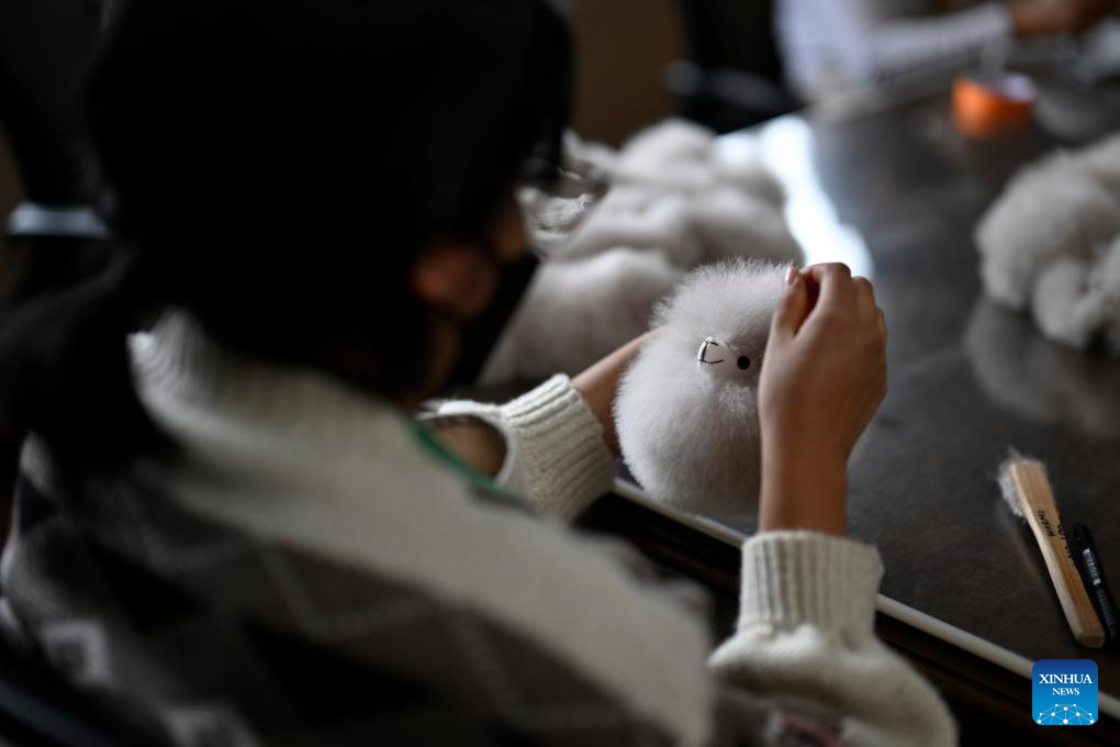 Imagen del 20 de junio de 2024 de una empleada revisando la calidad de un peluche de alpaca, en Arequipa, Perú. Oswaldo Mamani es un peruano de 50 años que, radicado en la región sureña de Arequipa, se dedica desde su adolescencia a producir muñecos con pieles de alpaca, una experiencia que le ha llevado a independizarse laboralmente y a emprender en los últimos años un camino de negocio exitoso con el mercado chino. (Xinhua/Li Muzi)