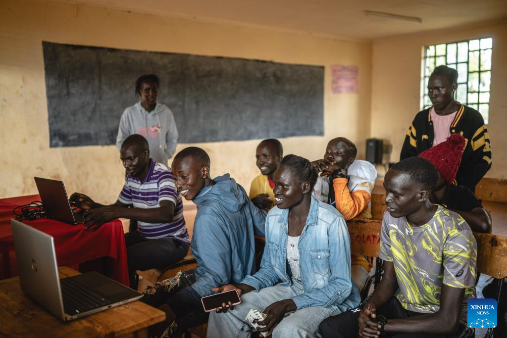NAIROBI, 26 junio, 2024 (Xinhua) -- Imagen del 22 de junio de 2024 de Perina (c-frente) asistiendo a una clase en línea con sus compañeros de equipo en la escuela All4Running, en el condado de Nandi, en el oeste de Kenia. Afrontando el clima frío de la madrugada, un grupo de atletas corre por las colinas de Nandi, situadas a unos 350 kilómetros al noroeste de Nairobi, como parte de su rutina diaria para desarrollar la resistencia necesaria para las carreras de media y larga distancia. Perina Lokure Nakang, una joven refugiada de Sudán del Sur, forma parte del grupo que se encuentra en sus preparativos finales para los Juegos Olímpicos de Verano de 2024, que se celebrarán en París, Francia, a finales de julio. La joven de 21 años fue seleccionada para formar parte del Equipo Olímpico de Refugiados, donde competirá en la carrera de 800 metros. (Xinhua/Wang Guansen)