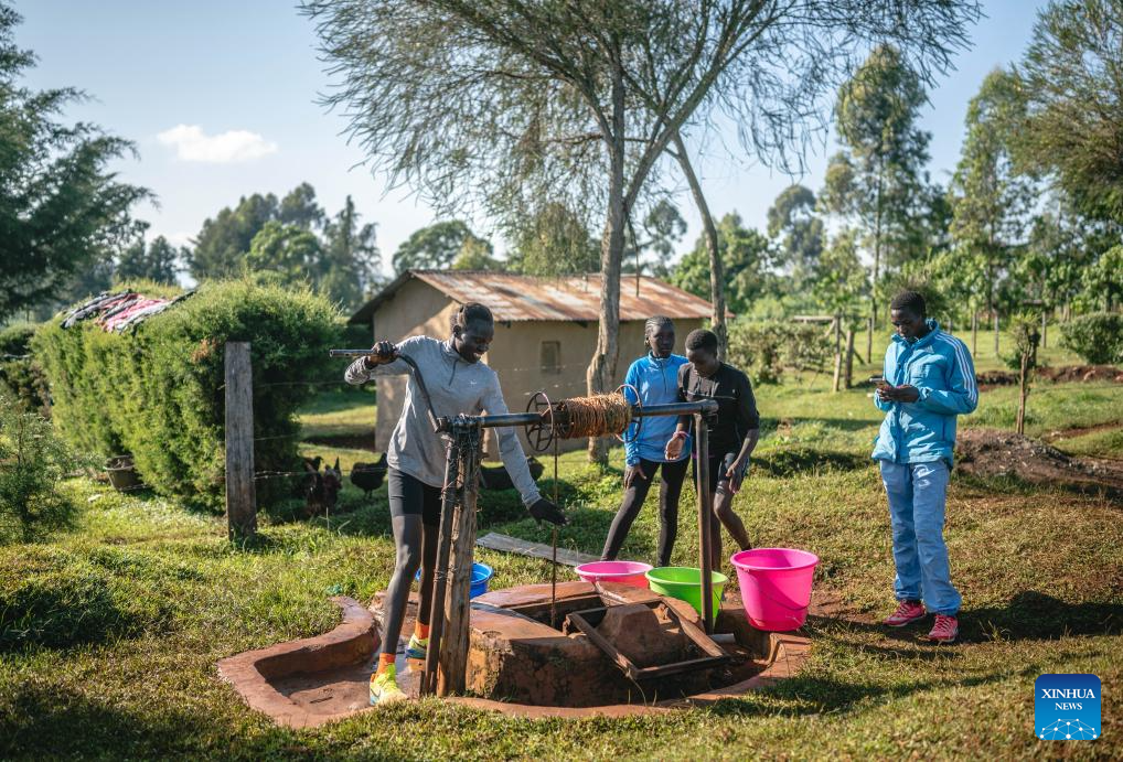 NAIROBI, 26 junio, 2024 (Xinhua) -- Imagen del 22 de junio de 2024 de Perina (i) recogiendo agua en la escuela All4Running, en el condado de Nandi, en el oeste de Kenia. Afrontando el clima frío de la madrugada, un grupo de atletas corre por las colinas de Nandi, situadas a unos 350 kilómetros al noroeste de Nairobi, como parte de su rutina diaria para desarrollar la resistencia necesaria para las carreras de media y larga distancia. Perina Lokure Nakang, una joven refugiada de Sudán del Sur, forma parte del grupo que se encuentra en sus preparativos finales para los Juegos Olímpicos de Verano de 2024, que se celebrarán en París, Francia, a finales de julio. La joven de 21 años fue seleccionada para formar parte del Equipo Olímpico de Refugiados, donde competirá en la carrera de 800 metros. (Xinhua/Wang Guansen)
