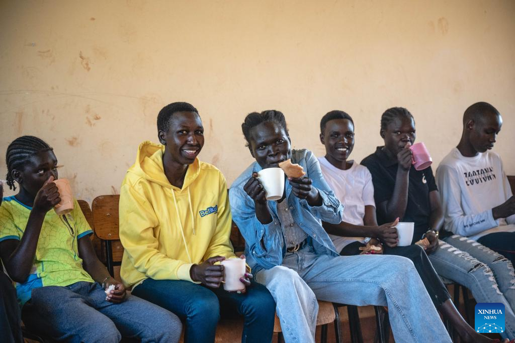 NAIROBI, 26 junio, 2024 (Xinhua) -- Imagen del 22 de junio de 2024 de Perina (c) mostrando su desayuno en la escuela All4Running, en el condado de Nandi, en el oeste de Kenia. Afrontando el clima frío de la madrugada, un grupo de atletas corre por las colinas de Nandi, situadas a unos 350 kilómetros al noroeste de Nairobi, como parte de su rutina diaria para desarrollar la resistencia necesaria para las carreras de media y larga distancia. Perina Lokure Nakang, una joven refugiada de Sudán del Sur, forma parte del grupo que se encuentra en sus preparativos finales para los Juegos Olímpicos de Verano de 2024, que se celebrarán en París, Francia, a finales de julio. La joven de 21 años fue seleccionada para formar parte del Equipo Olímpico de Refugiados, donde competirá en la carrera de 800 metros. (Xinhua/Wang Guansen)
