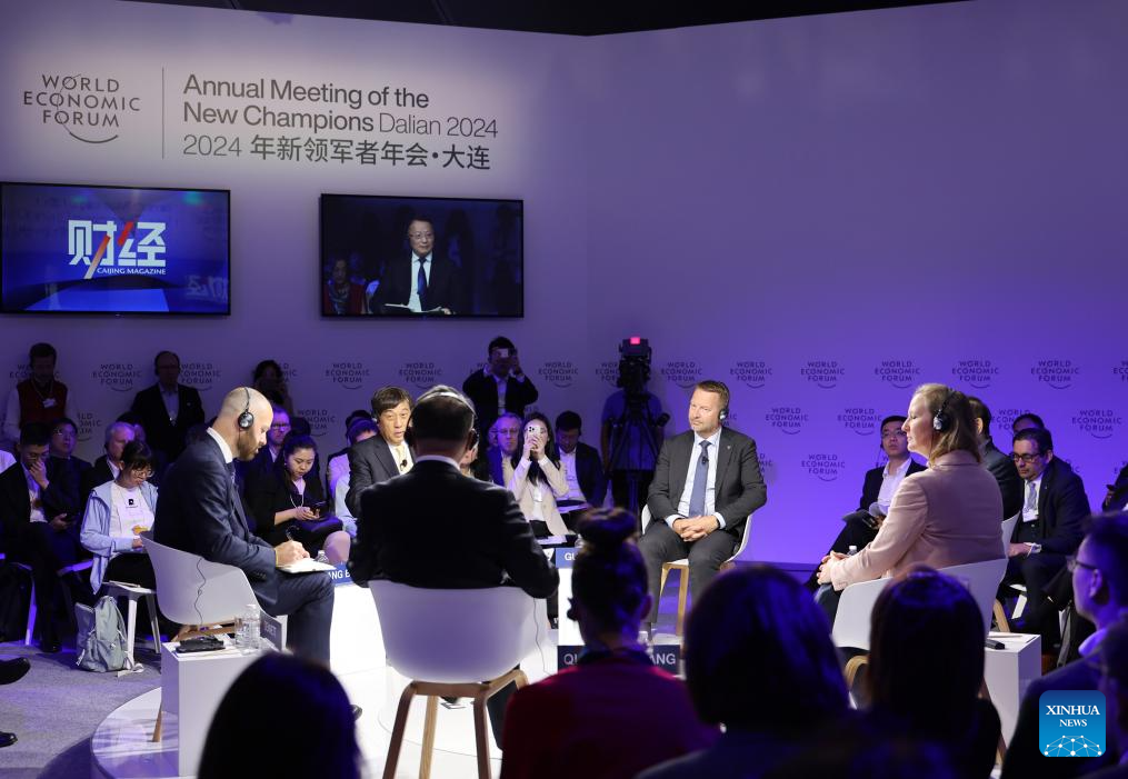 DALIAN, 26 junio, 2024 (Xinhua) -- Delegados asisten a un debate durante el Foro Davos de Verano 2024 en el Centro Internacional de Conferencias de Dalian, en Dalian, en la provincia de Liaoning, en el noreste de China, el 26 de junio de 2024. La XV Reunión Anual de los Nuevos Campeones, también conocida como Foro Davos de Verano, se inauguró el martes, en la ciudad costera de Dalian, en el noreste de China. Con el tema "Próximas fronteras para el crecimiento", el evento, que se celebra del 25 al 27 de junio, reúne a unos 1.700 líderes de los sectores público y privado de casi 100 países y regiones para explorar conjuntamente nuevos motores y vías para el crecimiento económico mundial. (Xinhua/Li Gang)
