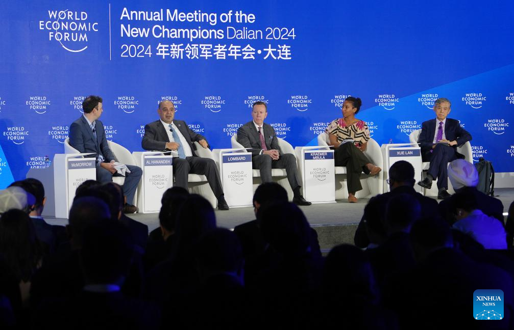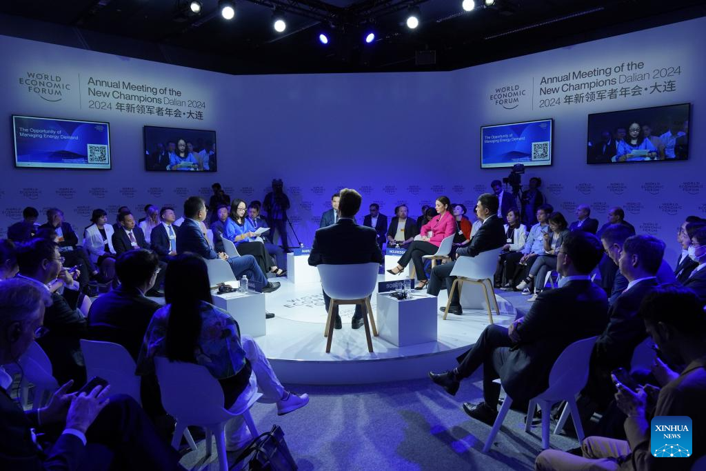 DALIAN, 26 junio, 2024 (Xinhua) -- Imagen del 25 de junio de 2024 de delegados asistiendo a la sesión paralela "La Oportunidad de Gestionar la Demanda Energética" durante el Foro Davos de Verano 2024 en el Centro Internacional de Conferencias de Dalian, en Dalian, en la provincia de Liaoning, en el noreste de China. La XV Reunión Anual de los Nuevos Campeones, también conocida como Foro Davos de Verano, se inauguró el martes, en la ciudad costera de Dalian, en el noreste de China. Con el tema "Próximas fronteras para el crecimiento", el evento, que se celebra del 25 al 27 de junio, reúne a unos 1.700 líderes de los sectores público y privado de casi 100 países y regiones para explorar conjuntamente nuevos motores y vías para el crecimiento económico mundial. (Xinhua/Lu Yang)