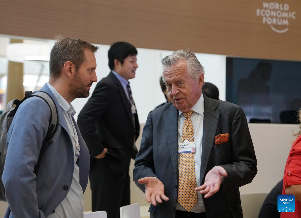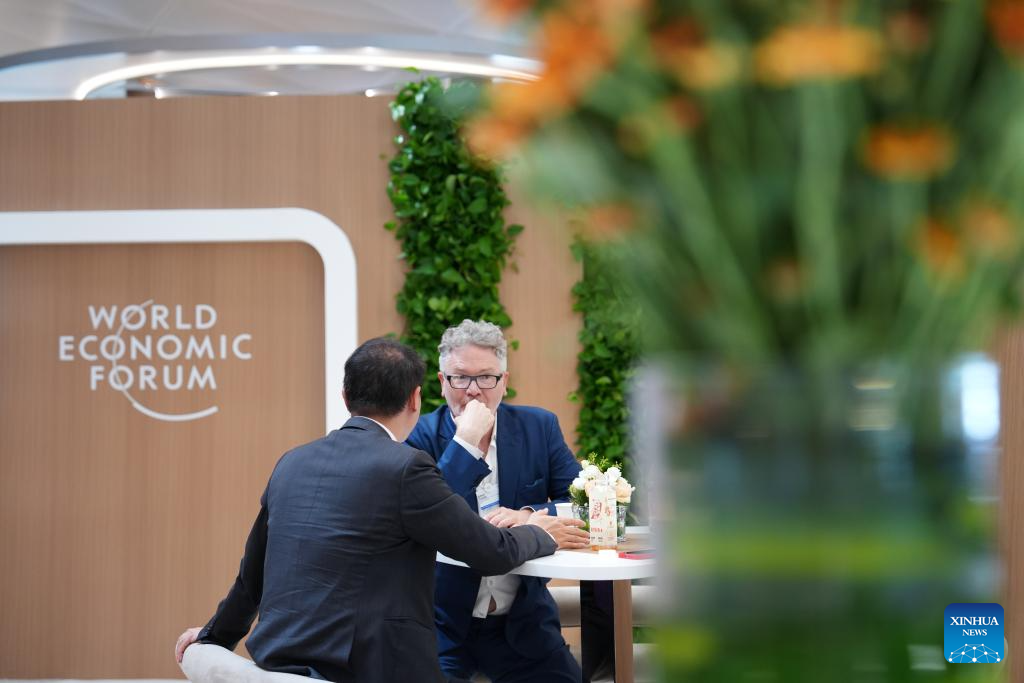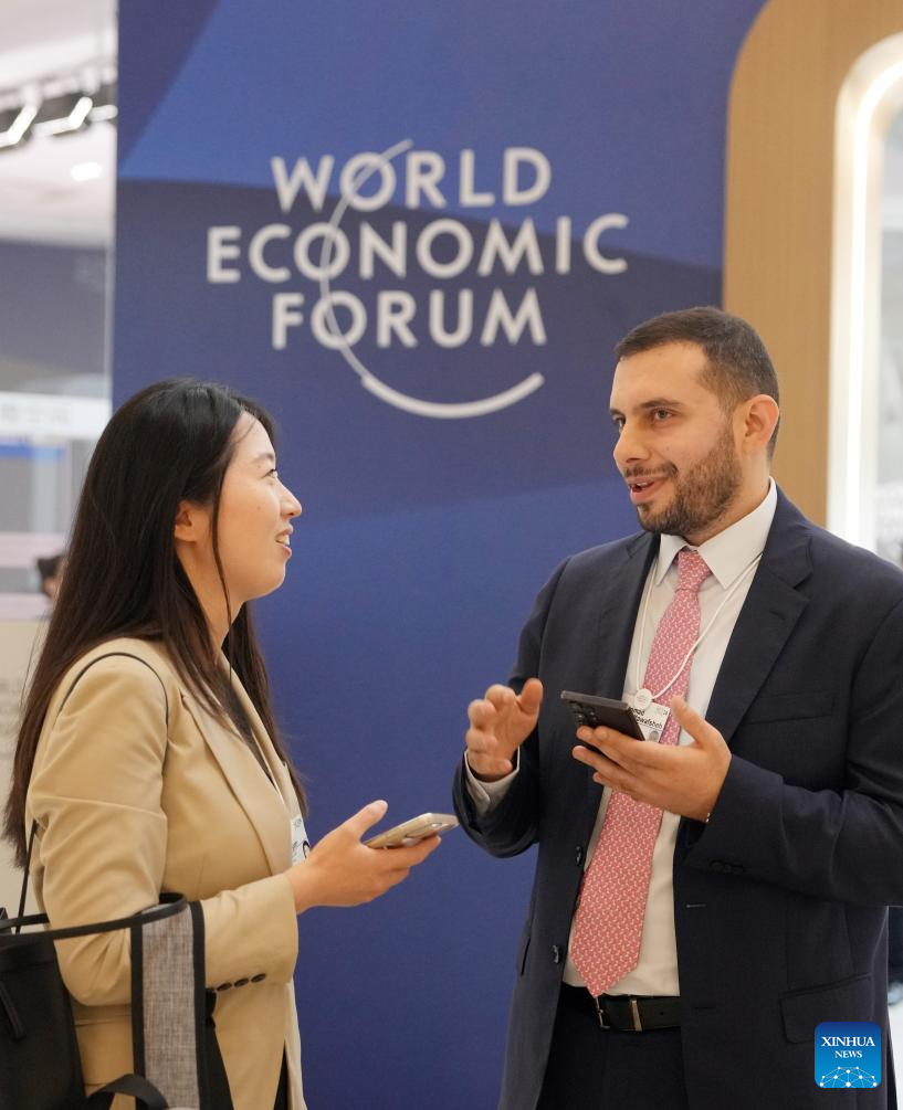 DALIAN, 26 junio, 2024 (Xinhua) -- Delegados se comunican durante el Foro Davos de Verano 2024 en el Centro Internacional de Conferencias de Dalian, en Dalian, en la provincia de Liaoning, en el noreste de China, el 26 de junio de 2024. La XV Reunión Anual de los Nuevos Campeones, también conocida como Foro Davos de Verano, se inauguró el martes, en la ciudad costera de Dalian, en el noreste de China. Con el tema "Próximas fronteras para el crecimiento", el evento, que se celebra del 25 al 27 de junio, reúne a unos 1.700 líderes de los sectores público y privado de casi 100 países y regiones para explorar conjuntamente nuevos motores y vías para el crecimiento económico mundial. (Xinhua/Zhang Lei)