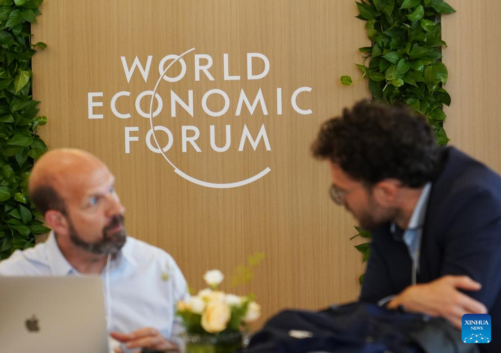 Delegados se comunican durante el Foro Davos de Verano 2024