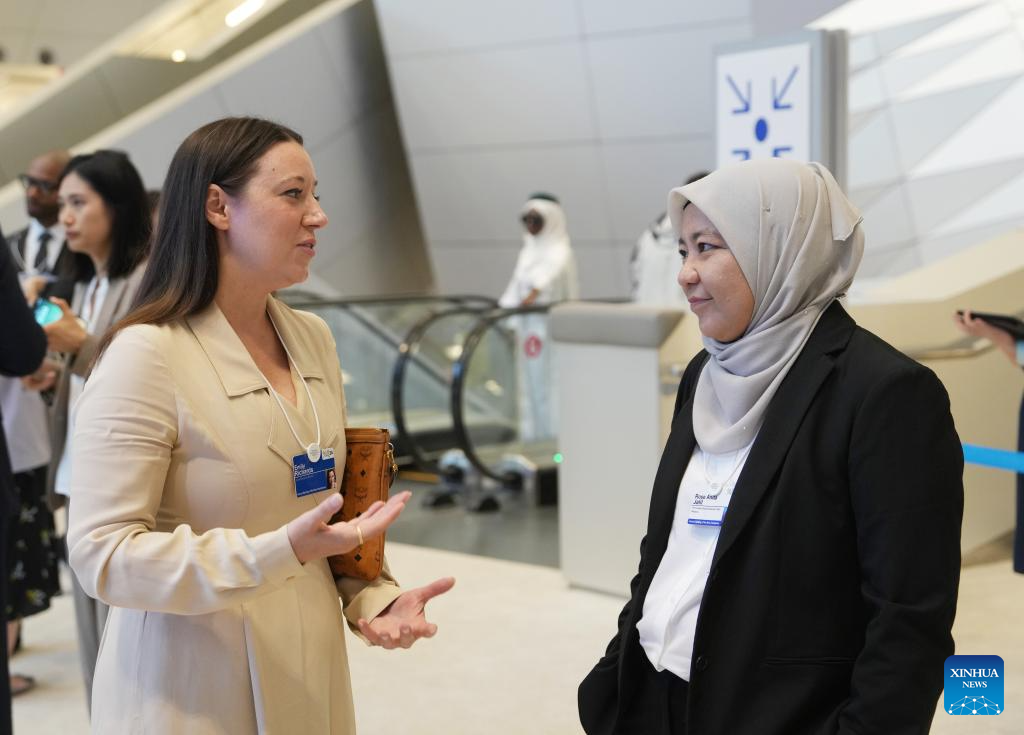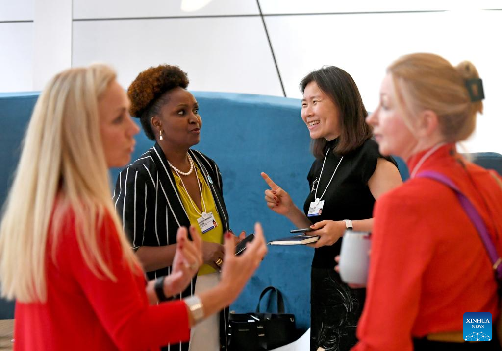 DALIAN, 26 junio, 2024 (Xinhua) -- Imagen del 25 de junio de 2024 de delegadas comunicándose durante el Foro Davos de Verano 2024 en el Centro Internacional de Conferencias de Dalian, en Dalian, en la provincia de Liaoning, en el noreste de China. La XV Reunión Anual de los Nuevos Campeones, también conocida como Foro Davos de Verano, se inauguró el martes, en la ciudad costera de Dalian, en el noreste de China. Con el tema "Próximas fronteras para el crecimiento", el evento, que se celebra del 25 al 27 de junio, reúne a unos 1.700 líderes de los sectores público y privado de casi 100 países y regiones para explorar conjuntamente nuevos motores y vías para el crecimiento económico mundial. (Xinhua/Lu Yang)