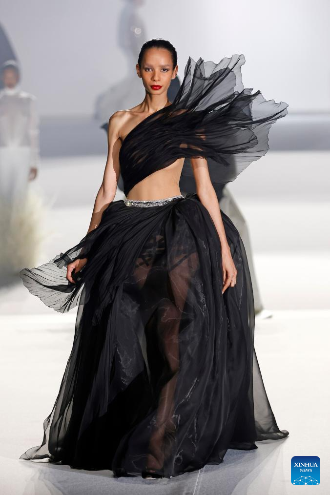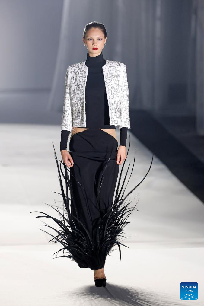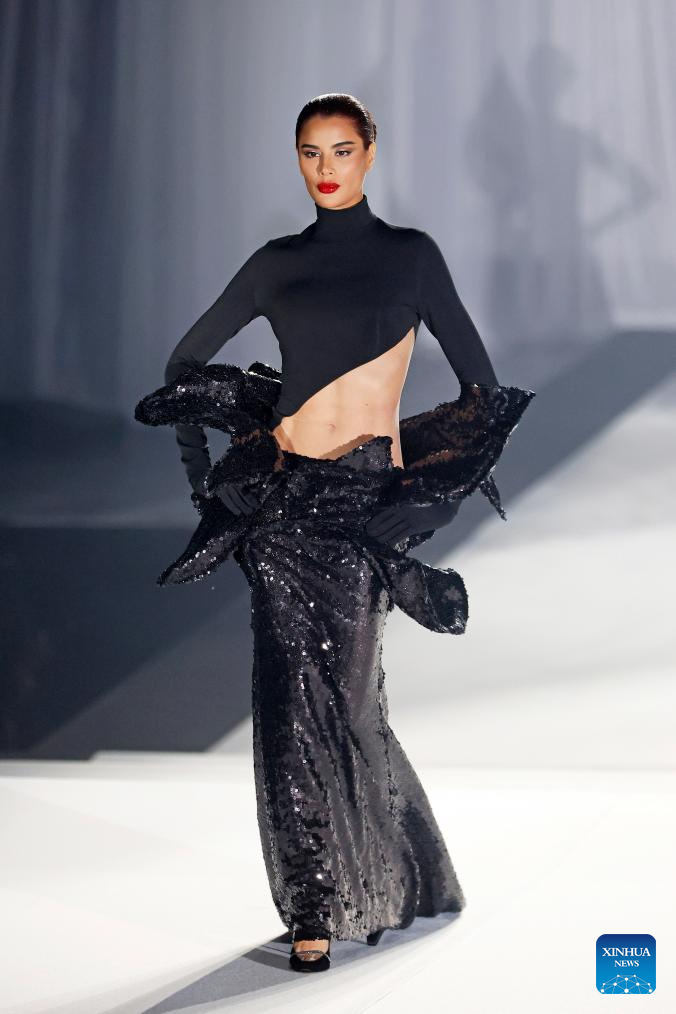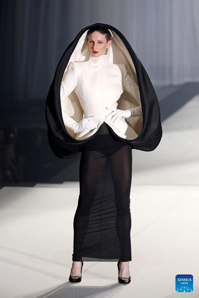 PARIS, 26 junio, 2024 (Xinhua) -- Imagen del 25 de junio de 2024 de una modelo presentando una creación de las colecciones de Alta Costura Otoño/Invierno 2024-2025 de Stephane Rolland durante la Semana de la Moda de París, en París, Francia. (Xinhua/MeetEurope)