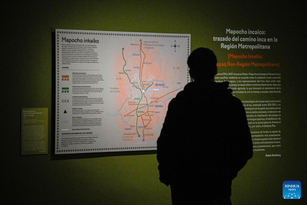 SANTIAGO, 27 junio, 2024 (Xinhua) -- Un hombre visita la exposición "Qhapaq Ñan/Camino del Inca. Nudos y encuentros" en el Centro Cultural La Moneda, en Santiago, capital de Chile, el 27 de junio de 2024. (Xinhua/Jorge Villegas)