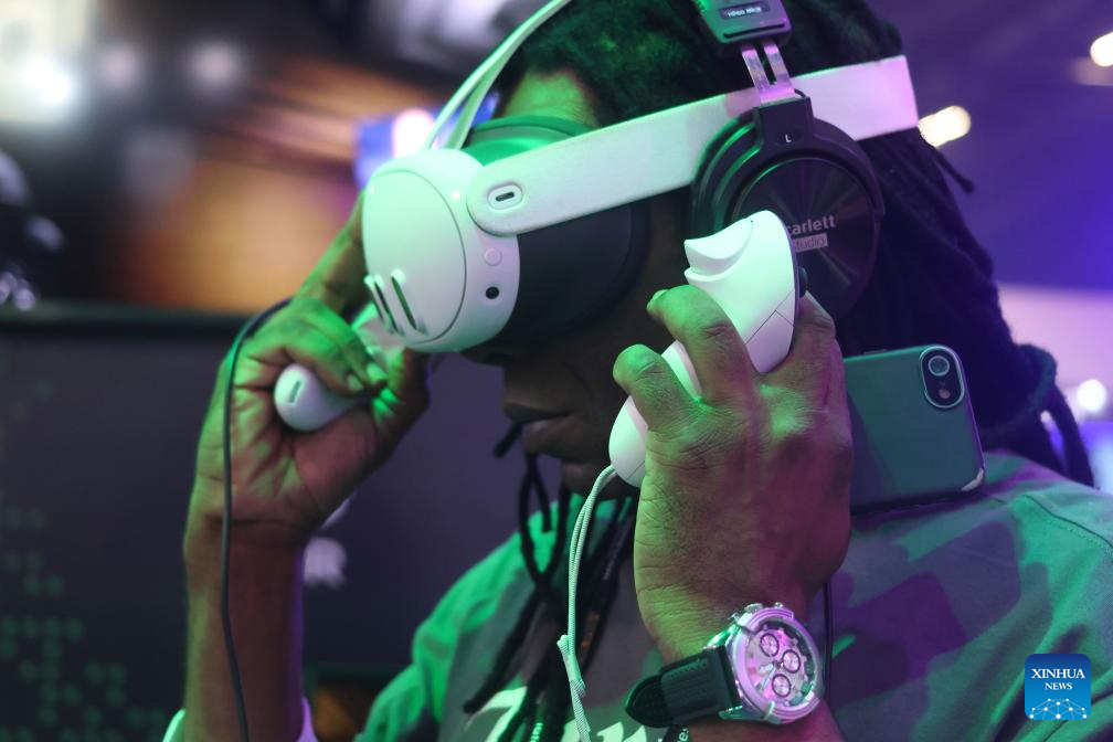 SAO PAULO, 27 junio, 2024 (Xinhua) -- Un hombre opera un videojuego en la Gamescom Latam, en Sao Paulo, Brasil, el 27 de junio de 2024. (Xinhua/Rahel Patrasso)