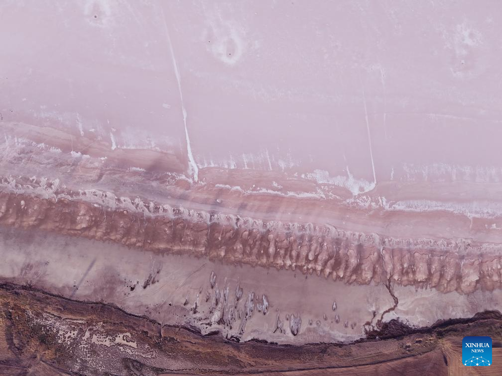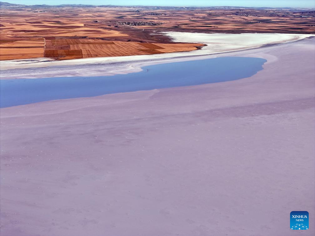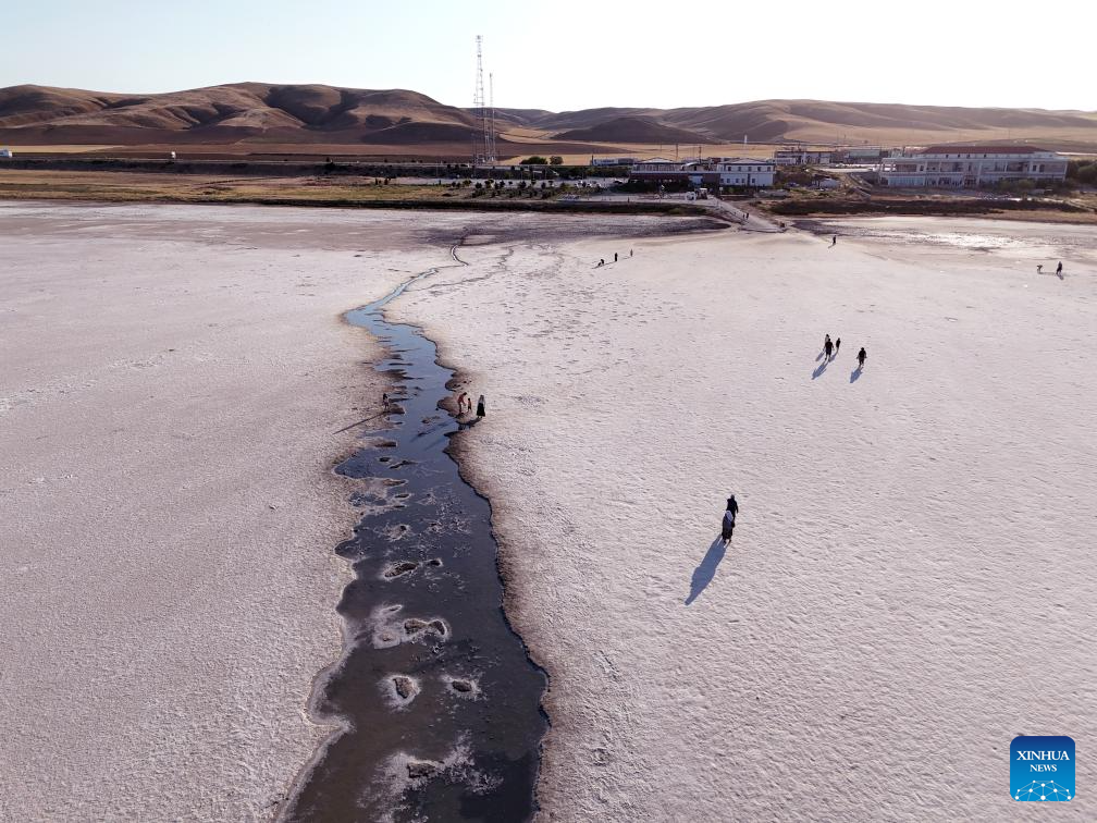 ANKARA, 27 junio, 2024 (Xinhua) -- Vista aérea tomada con un dron el 26 de junio de 2024 del Lago de Sal en la Región de Anatolia Central, Turquía. (Xinhua/Mustafa Kaya)