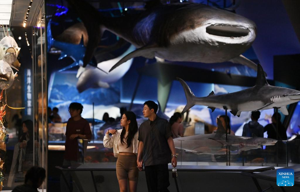TIANJIN, 28 junio, 2024 (Xinhua) -- Personas visitan el Museo Nacional Marítimo de China, en Tianjin, en el norte de China, el 28 de junio de 2024. El Museo Nacional Marítimo de China está ubicado en la Nueva Area de Binhai de Tianjin, cubriendo un área de 15 hectáreas. A medida que las vacaciones de verano se acercan, el número de visitantes al museo ha incrementado. (Xinhua/Li Ran)