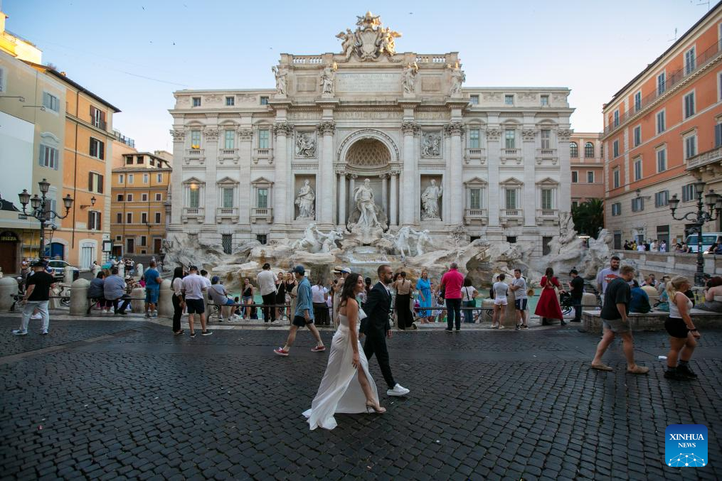 ROMA, 28 junio, 2024 (Xinhua) -- Personas visitan la Fuente de Trevi, en Roma, Italia, el 28 de junio de 2024. (Xinhua/Li Jing)