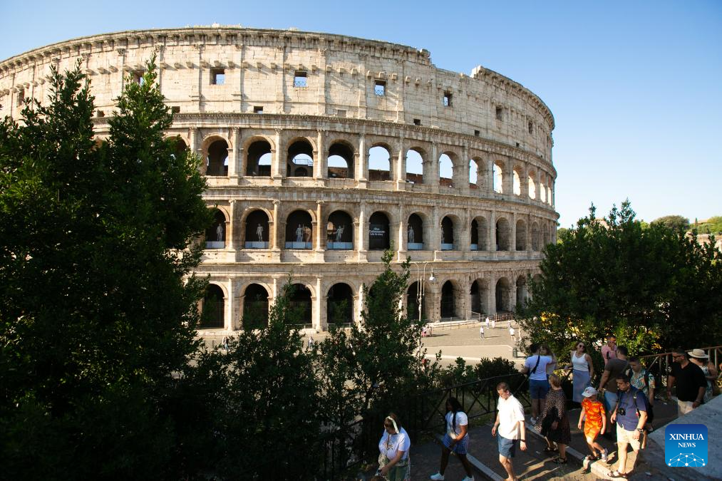 ROMA, 28 junio, 2024 (Xinhua) -- Personas caminan frente al Coliseo, en Roma, Italia, el 28 de junio de 2024. (Xinhua/Li Jing)