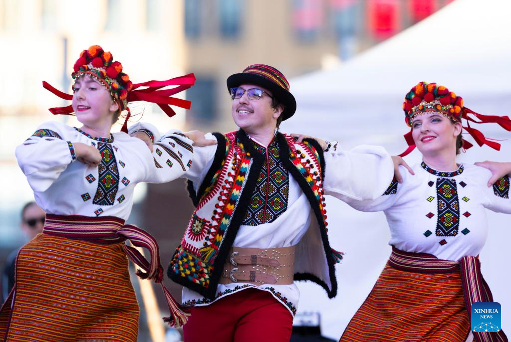 TORONTO, 28 junio, 2024 (Xinhua) -- Imagen del 27 de junio de 2024 de bailarines presentándose en el escenario durante el Festival del Día del Multiculturalismo Canadiense 2024 en la plaza Yonge-Dundas, en Toronto, Canadá. Presentando espectáculos en vivo de música y bailes de diversas culturas, el evento se llevó a cabo aquí el jueves. (Xinhua/Zou Zheng)