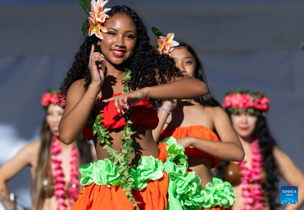 TORONTO, 28 junio, 2024 (Xinhua) -- Imagen del 27 de junio de 2024 de bailarinas presentándose en el escenario durante el Festival del Día del Multiculturalismo Canadiense 2024 en la plaza Yonge-Dundas, en Toronto, Canadá. Presentando espectáculos en vivo de música y bailes de diversas culturas, el evento se llevó a cabo aquí el jueves. (Xinhua/Zou Zheng)