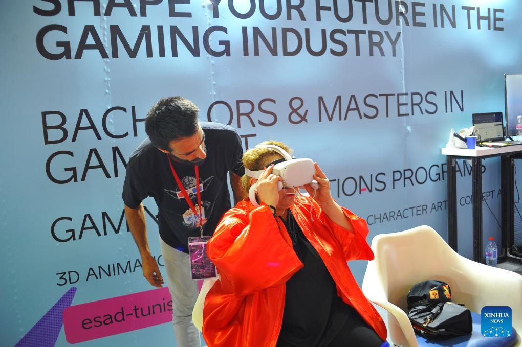 TUNEZ, 28 junio, 2024 (Xinhua) -- Imagen del 27 de junio de 2024 de una visitante probando un dispositivo en una exposición internacional sobre inteligencia artificial, en Túnez, Túnez. (Xinhua/Adel Ezzine)